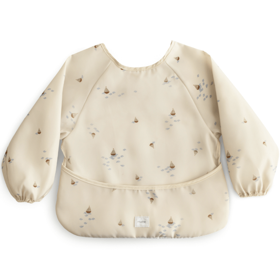 Mantenha as crianças limpas na hora das refeições, durante projetos de arte ou em outros momentos de bagunça com nosso babador de manga comprida resistente à água. Seu bolso largo retém facilmente os alimentos, enquanto o babador permanece seguro e cobre completamente as roupas. Com fecho de velcro na nuca, tem o tamanho perfeito para crianças entre 6 e 24 meses.