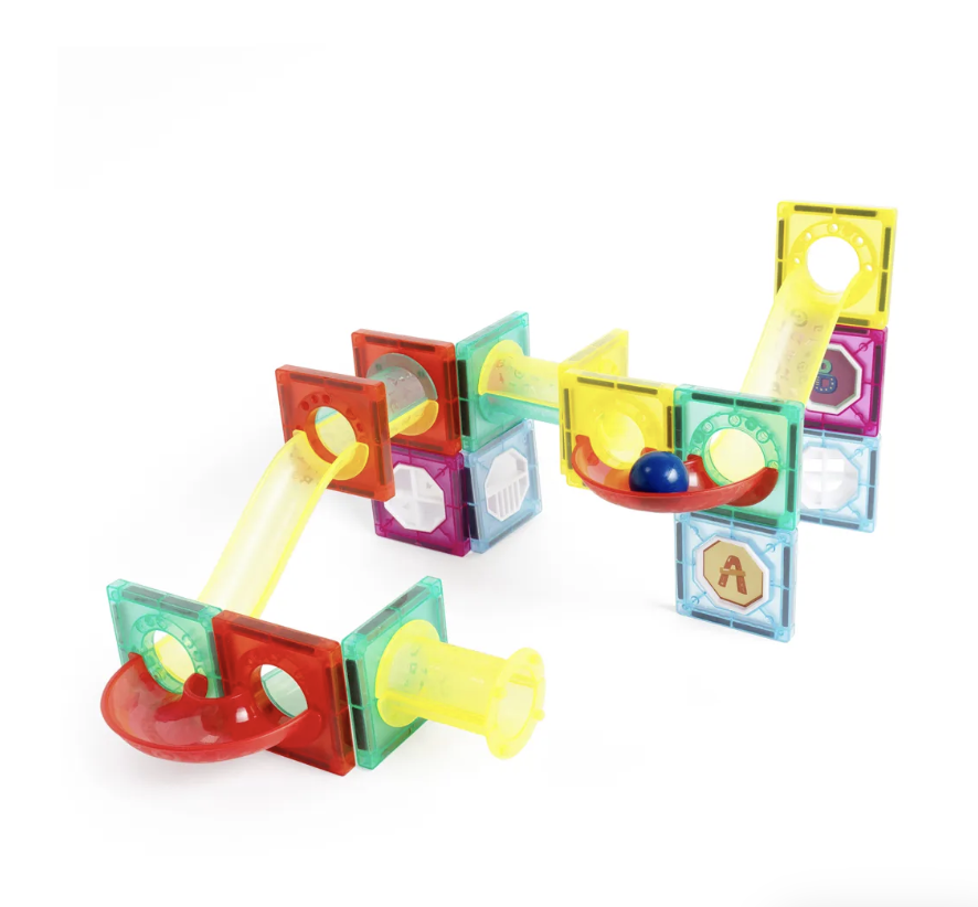 Design modular: As crianças podem montar e desmontar o circuito de maneiras diferentes, promovendo a criatividade e a resolução de problemas. Imãs: As peças magnéticas tornam fácil a construção e modificação das pistas, sem a necessidade de fixadores ou conectores complexos. Bolinhas: O conjunto inclui bolinhas que deslizam pelas trilhas. Estímulo educacional: Ótimo para desenvolver habilidades de engenharia, coordenação motora e pensamento lógico. Brinquedo educacional e de alta qualidade, o que faz dele uma opção divertida e segura para crianças explorarem a física básica de movimento, gravidade e construção. Contém 47 peças com formatos diferentes: Inclui painéis magnéticos que se conectam facilmente para formar diferentes estruturas, como rampas, curvas e trilhas para as bolinhas.
