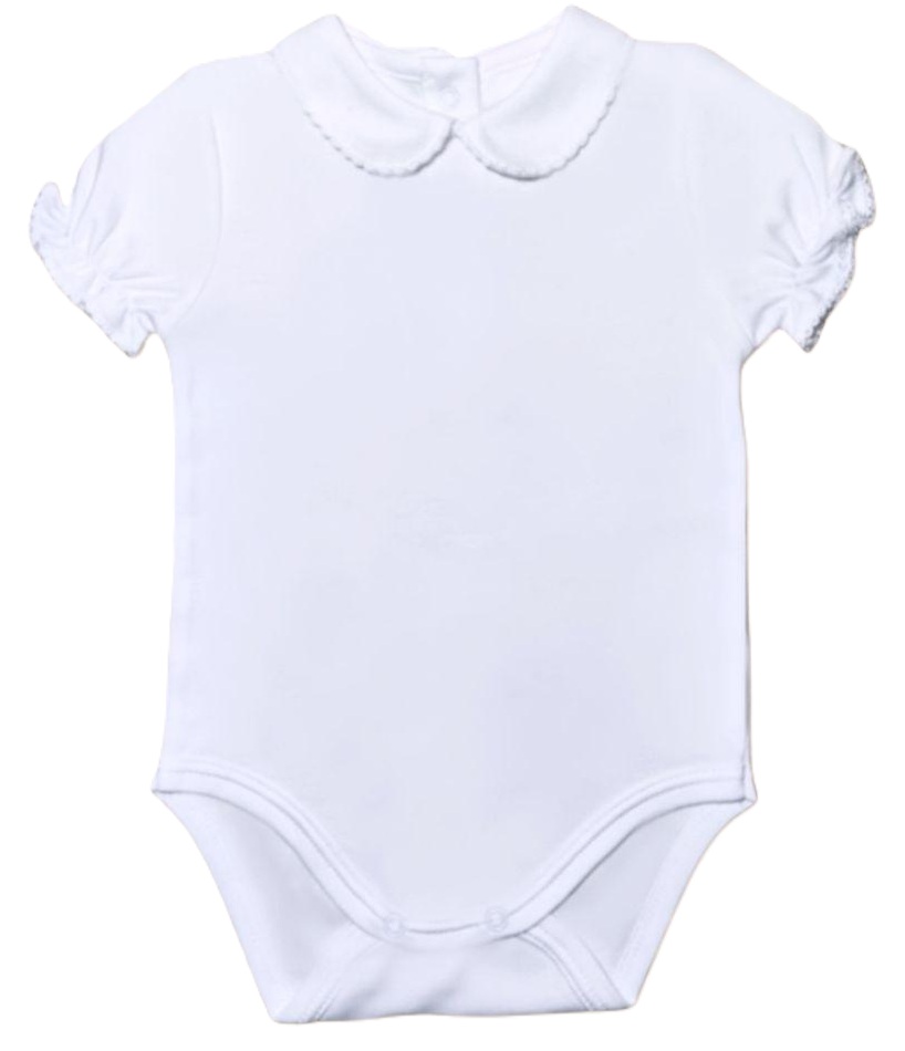 Body Liso Manga Corta gola Bico Menina - 100% Algodao Pima Peruano, Gola Bico com Picueta