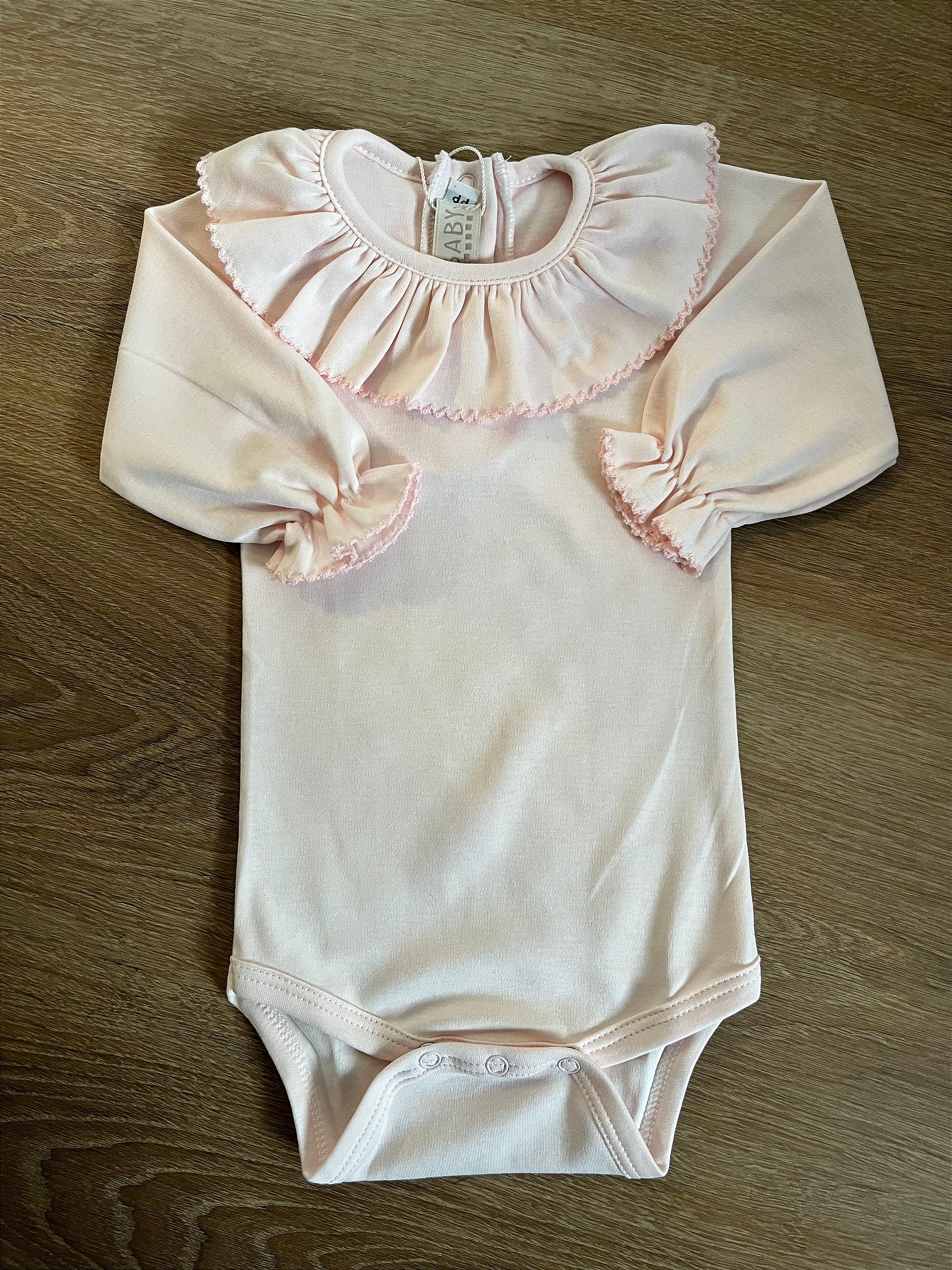 Body Rosa Pima Babado Manga Longa - Totalbaby