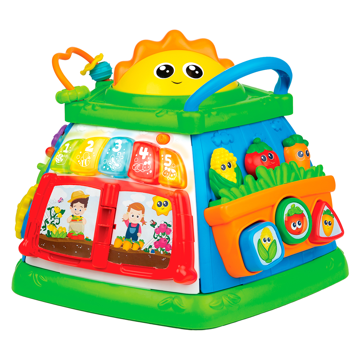 Para ajudar nessa descoberta incrível, a Winfun desenvolveu o cubo de atividades jardim encantado com 6 lados lúdicos, organize as formas e observe os legumes aparecerem, gire as peças para ver os números, insetos e plantas, deslize a borboleta e o sapo, vire as folhas e gire as engrenagens e pressione os 5 botões de iluminação, gire o sol ou vire a página para escutar efeitos sonoros e melodias.