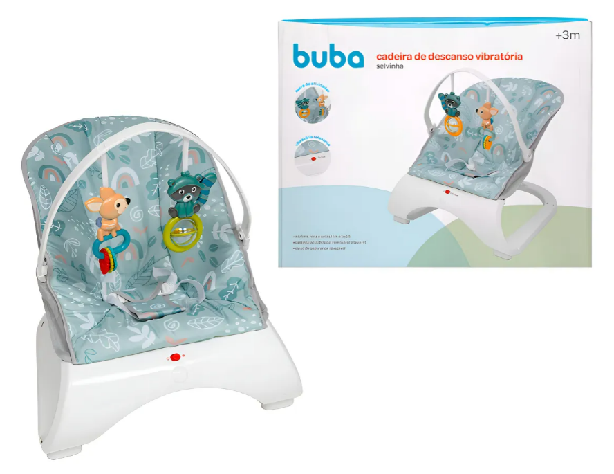 Aconchegante e divertida, a Cadeira de Descanso Vibratória Selvinha da Buba vai ajudar a garantir muito mais conforto para os pequenos.