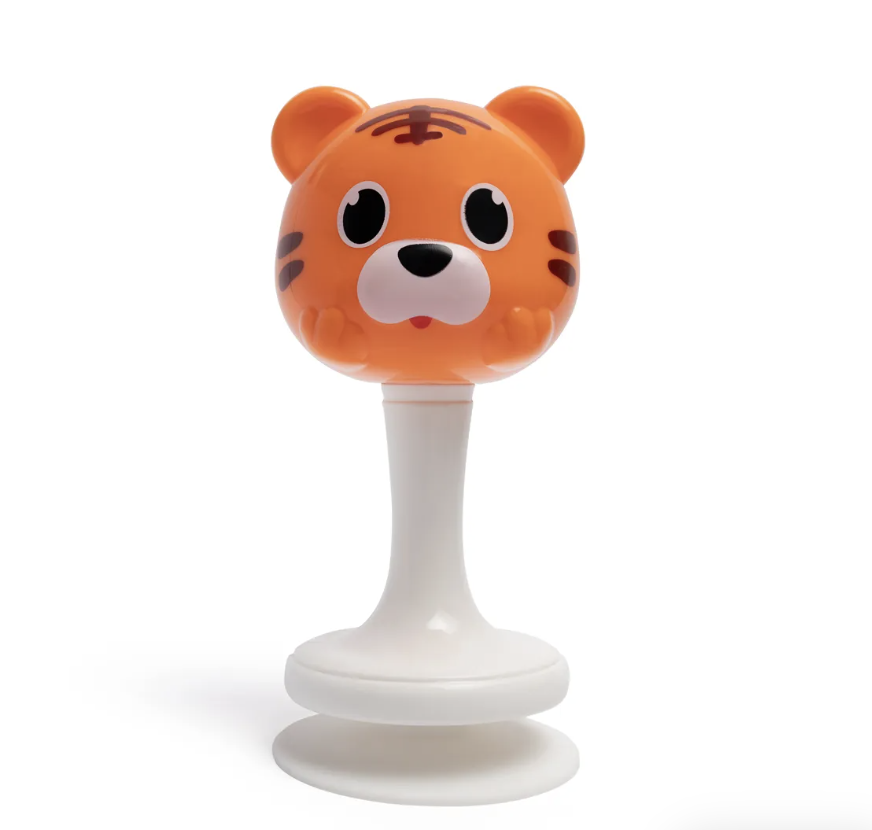 Este é um brinquedo educativo ideal para bebês, ajudando no desenvolvimento dos sentidos. Com formato de animal, é feito de plástico de alta qualidade, e possui uma ventosa para fixação em superfícies. a parte de trás da cabeça contém um recipiente giratório com bolas que emitem um som estridente ao ser girado ou sacudido. Brilhante, agradável ao toque e sonoro, o chocalho é projetado para bebês desde o nascimento. Seu design prático e tamanho reduzido facilitam o manuseio pelas mãos pequenas, estimulando a coordenação motora.