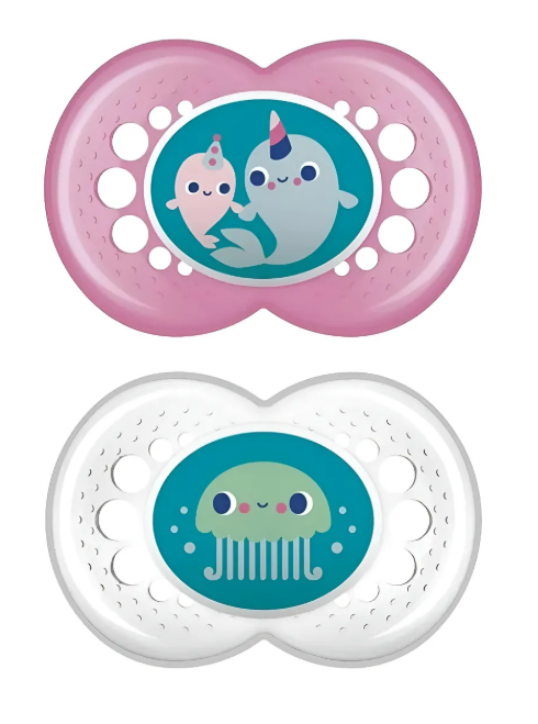As chupetas duplas da MAM® possuem coleções exclusivas e divertidas. Além disso, acompanham estojo para transporte e auto esterilização em apenas 3 minutos, sendo muito práticos. Sua curvatura especial confere mais facilidade de adaptação ao rosto. Todas as chupetas da MAM® possuem bico com tecnologia SkinSoft, textura macia e sedosa aceita por 94% dos bebês. São livres de BPA e BPS.