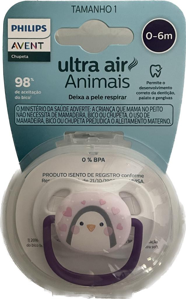 A Chupeta Ultra Air da Philips Avent foi desenhada para permitir o máximo de fluxo de ar, para que a pele sensível do bebê possa respirar, suas 4 aberturas ajuda na passagem do ar na pele do bebê, deixando a pele sempre seca enquanto utiliza a chupeta. Seu escudo tem suas pontas arredondadas para uma sucção confortável. Vem com caixa para esterilização no micro-ondas, fácil e segura, passos simples para esterilização confiável em 3 minutos. Produto recomendada para os bebês de 0 à 6 meses.