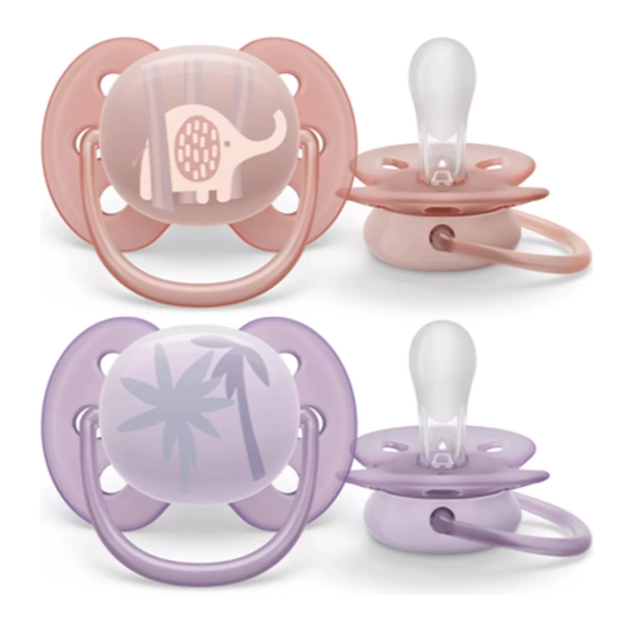 Com escudo flexível e bico texturizado, a Chupeta Ultra Soft foi desenvolvida para bebês de 6 a 18 meses, e vem com caixa esterilizadora para facilitar a higienização.