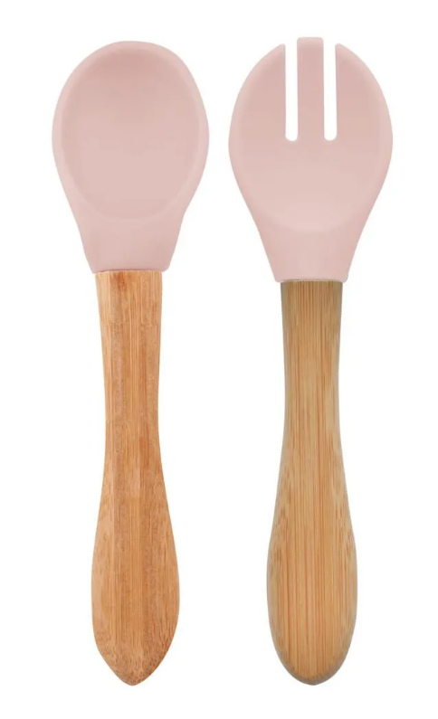 Colher e Garfo Silicone e Bambu Dig In Pinky Pink - Minikoioi