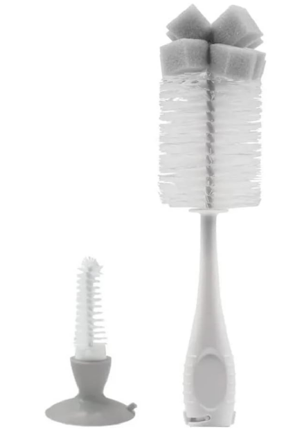 A Escova para Mamadeira da Buba é ideal para lavar garrafas e mamadeiras, pois sua esponja na ponta atinge áreas difíceis de serem alcançadas. Acompanha limpador de bicos que pode ser acessado desrosqueando o cabo da escova. As suas cerdas resistentes e macias foram desenvolvidas para promover higiene sem danificar o produto. Além disso, possui uma ventosa na base que é superprática para armazenar a escova na posição vertical