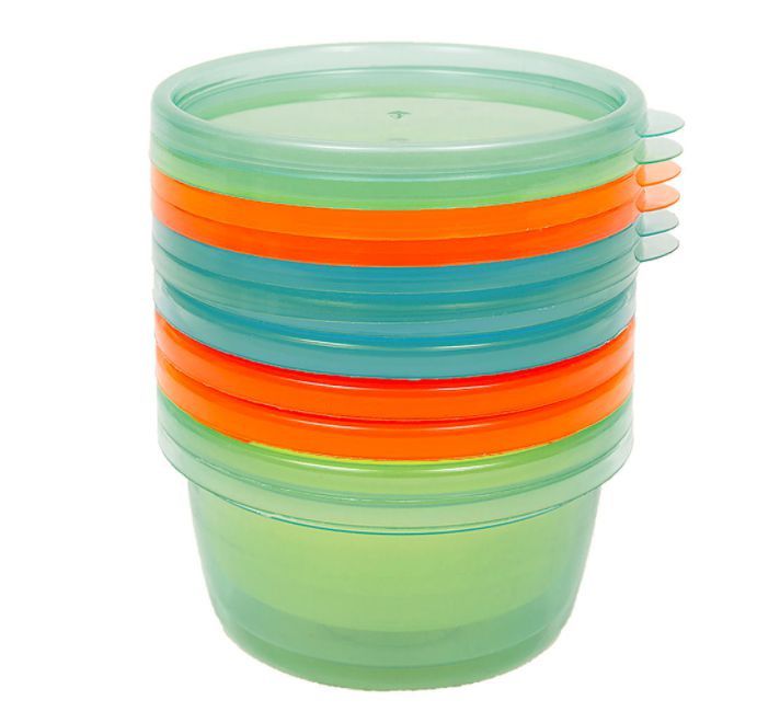 Os potes tem cores brilhantes, são translúcidos para que permite ver o conteúdo.