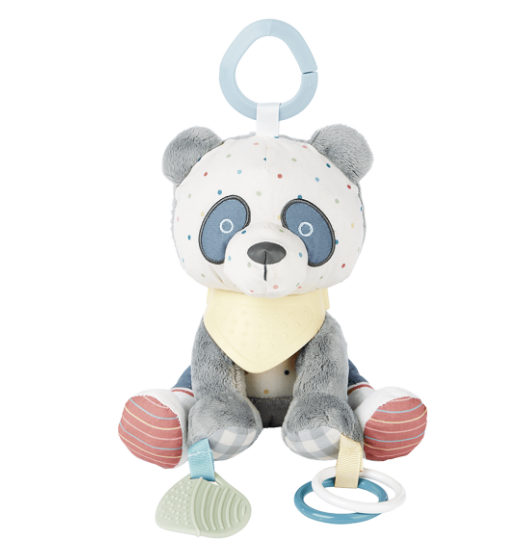 O Móbile de Atividades Bandana Buddies Urso Panda Skip Hop estimula a imaginação, a coordenação motora e os sentidos do bebê durante o desenvolvimento. Com cores vibrantes e texturas variadas, oferece múltiplas experiências sensoriais, incluindo elementos que giram, rangem e fazem barulho suave, incentivando a exploração tátil e visual.