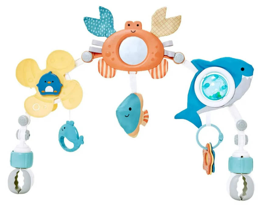 O Móbile Flexível Fundo do Mar da Buba é um acessório interativo para bebês a partir de 4 meses. Ele possui um arco flexível com garras universais que facilitam a fixação em carrinhos e berços. O brinquedo é livre de BPA e oferece diversos estímulos sensoriais através de: Brinquedos removíveis com tema marinho. Espelho central para o bebê se reconhecer. Mordedor integrado para auxiliar no alívio das gengivas.
