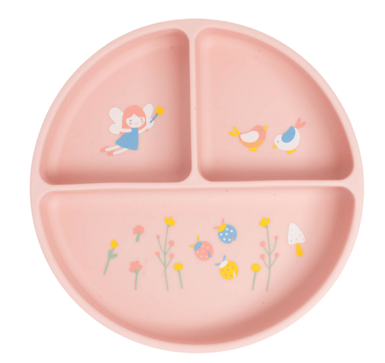 Prato De Silicone Com Ventosa e Divisórias Fadinha Rosa Büp Baby